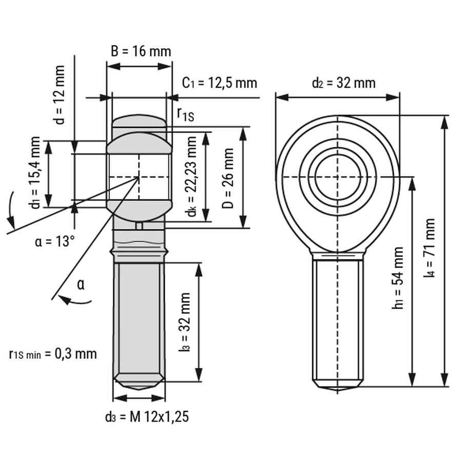 Rod End - Maintenance Free TSM12.1C open 12x32x16 mm 1