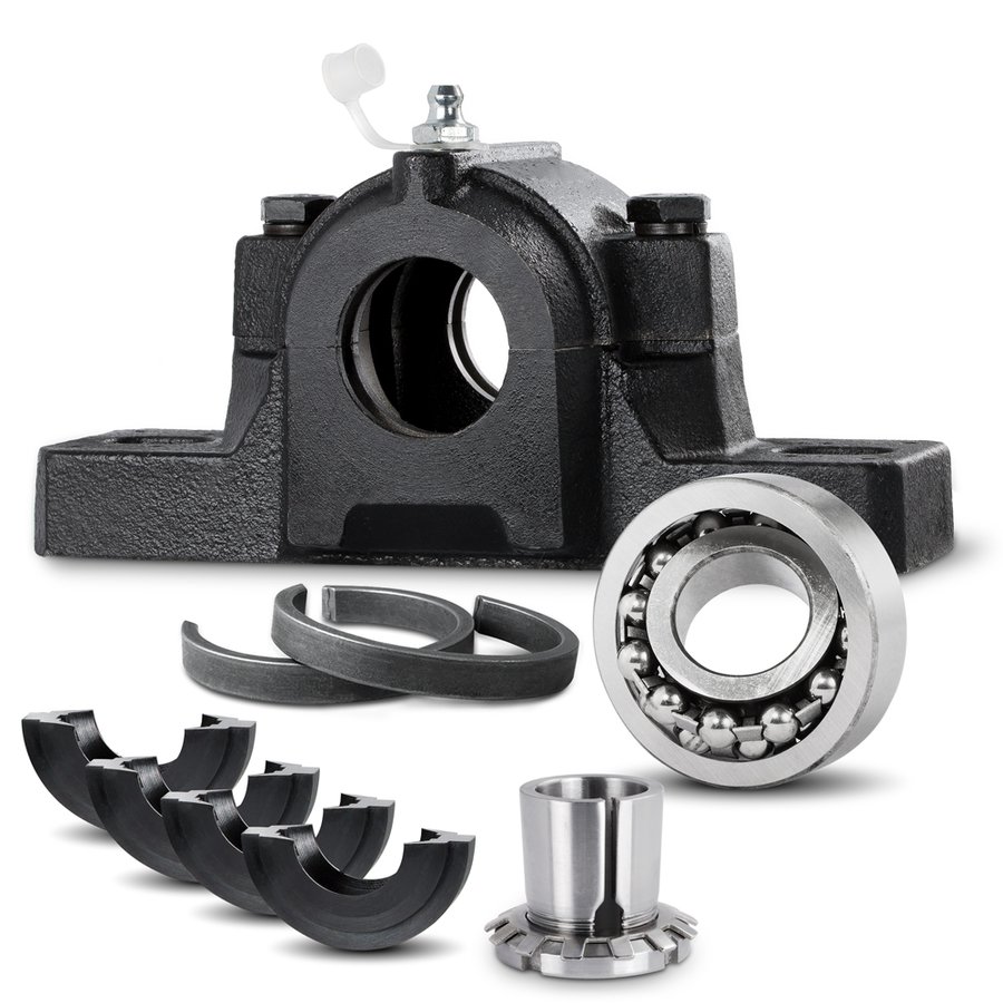 Split Plummer Block Housing SNL505-TG in a Set with Bearing Insert 1205-K and adapter sleeve H205, incl. 2 Locating Rings FRB-5/52